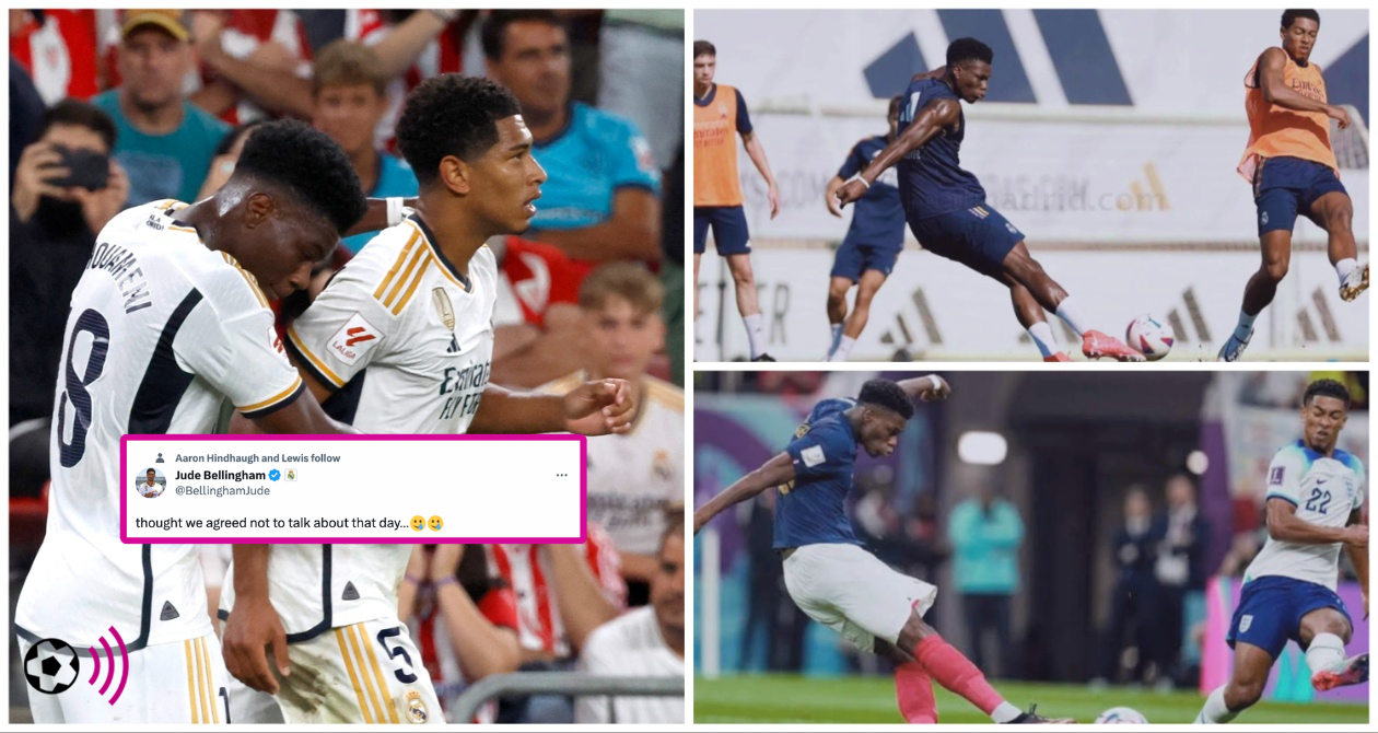 As you can see in the picture above, Tchouameni appears to have created the exact same moment he scored against his new English teammate as France knocked out the Three Lions at the 2022 World Cup last winter.